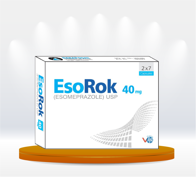 Esorok 40mg is a proton pump inhibitor (PPI) that specifically inhibits the proton pump of the gastric parietal cell, the final stage of gastric acid secretion. It is administered as a prodrug, activated by sulfitase, an enzyme present in the gut, which transforms esorok into its active form. This activation increases the drug’s lipophilicity, allowing it to cross the cell membrane and bind to the proton pump. Esorok 40mg cap is a potent and efficient inhibitor of the gastric proton pump, H+/K+ ATPase, which leads to a decrease in gastric acidity and increased pH levels. Esorok is indicated for the treatment of symptoms associated with gastroesophageal reflux disease (GERD), the healing of erosive esophagitis, treatment of gastric ulcers, in combination with other treatments, Helicobacter pylori infection, and the management of Zollinger-Ellison syndrome. Although PPIs are commonly used to reduce stomach acid, they should be prescribed and administered with caution. Always consult a healthcare professional for medical advice and proper medication usage.